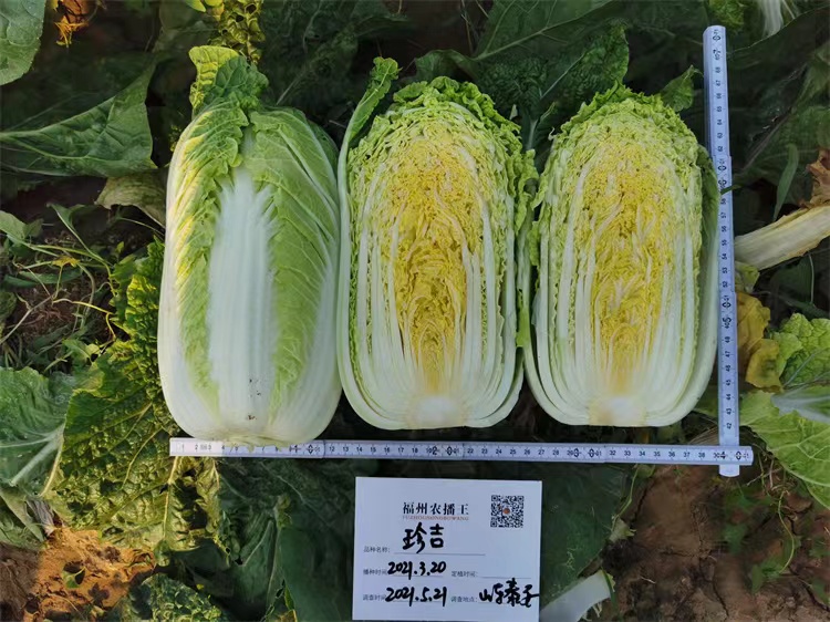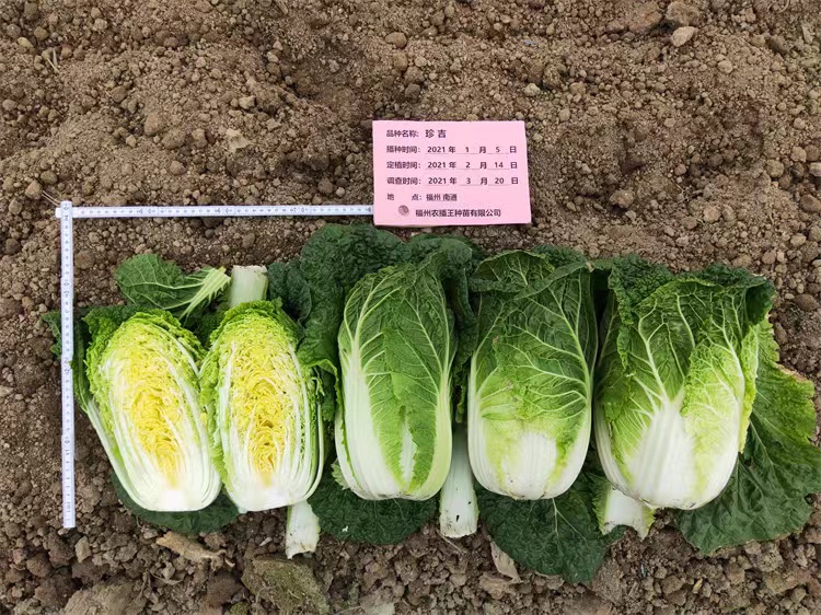 新型极早熟中棵大白菜,定植后45~50天可收获。外叶深绿,草姿直立,开展度小,可适当密植。叶球近圆筒形,顶部轻度合抱,菜型整齐,结球紧实,单球重1.8kg左右,净菜率高。较晚抽薹,不易出现烂芯,对根肿病、霜霉病有一定抗性,容易栽培。