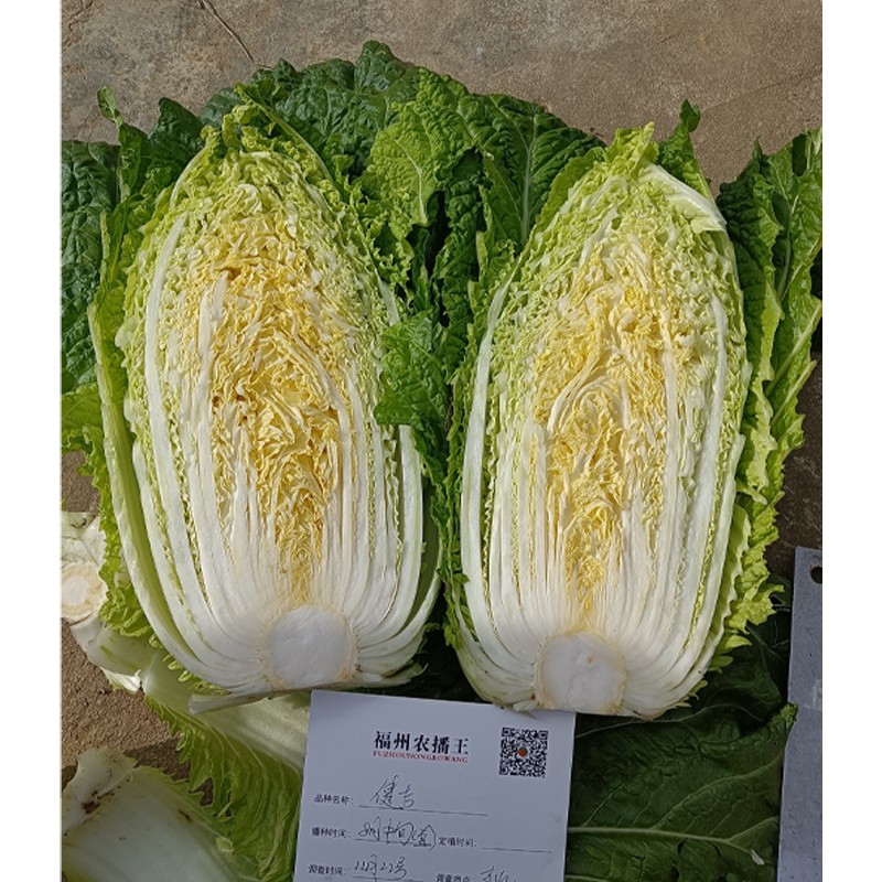 外叶绿、帮浅青,心叶黄,叶球柱状合抱,较耐抽薹,65天左右收获,可以做晚春、晚秋品种。