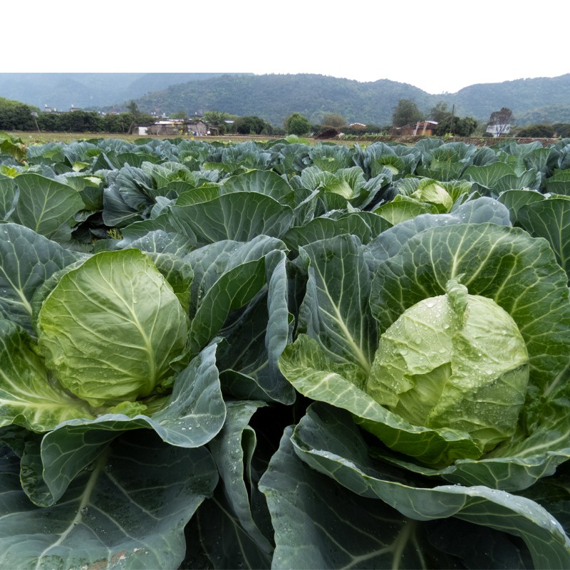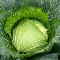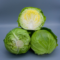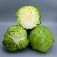 中早熟圆球甘蓝,定植后60-65天可采收,单球重0.8-1.2kg。外叶蜡少,叶球颜色绿,底部颜色绿,有光泽,绿叶层较厚,内叶鲜黄。球型圆正、稳定,结球松紧适中,在圃性好,不易裂球,抗病性强,容易栽培。